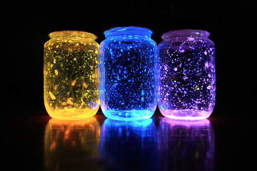 Enfim, há alguns dias eu estava procurando coisas legais para decoração de festa a fantasia e achei um Diy super interessante. São luminárias coloridas feitas com aquele líquido fluorescente que tem naquelas pulseirinhas de festa.